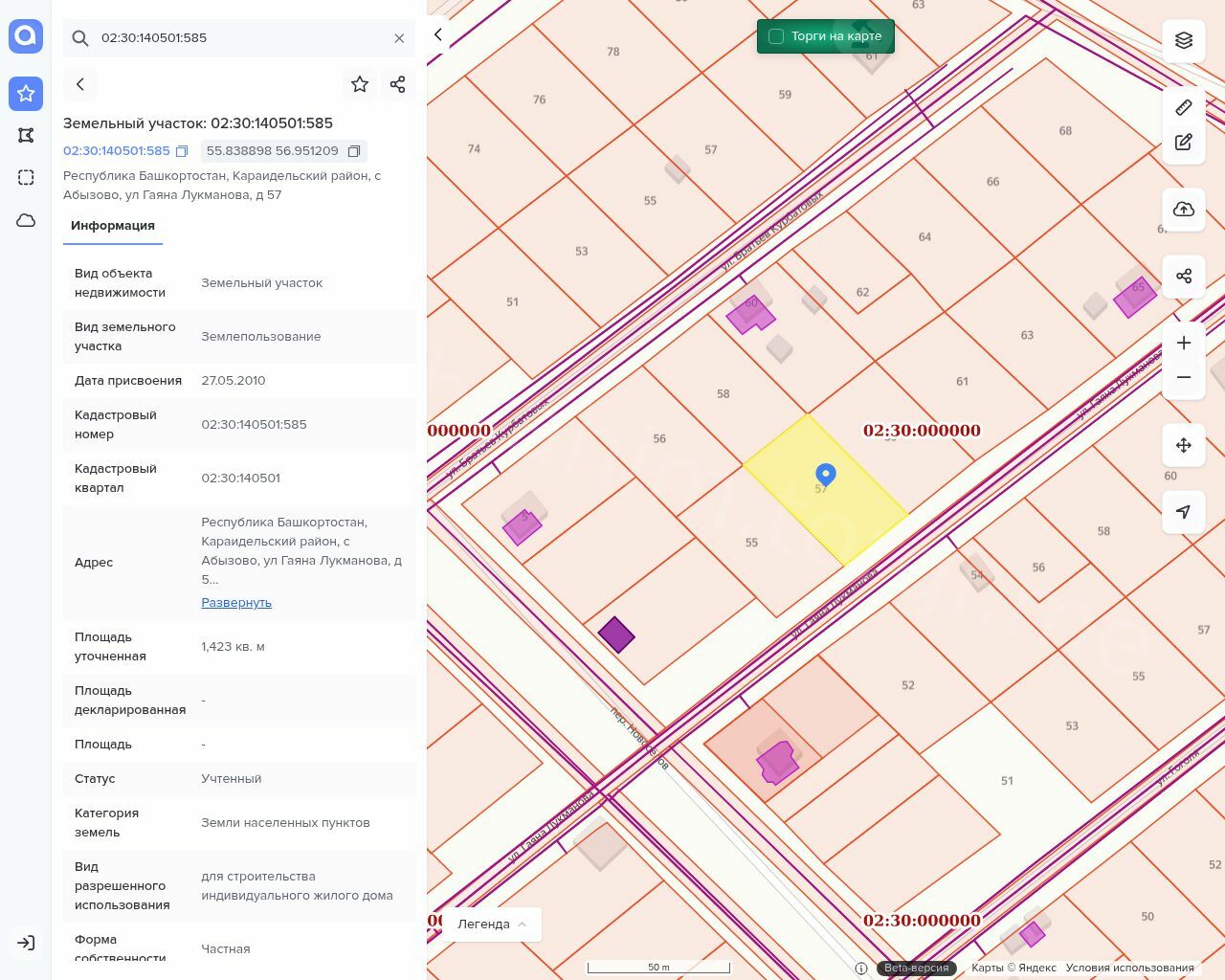 Земельный участок Кадастровый номер: 02:30:140501:585. Общая площадь, м2: 1487 +/-27. Вид права: Собственность.